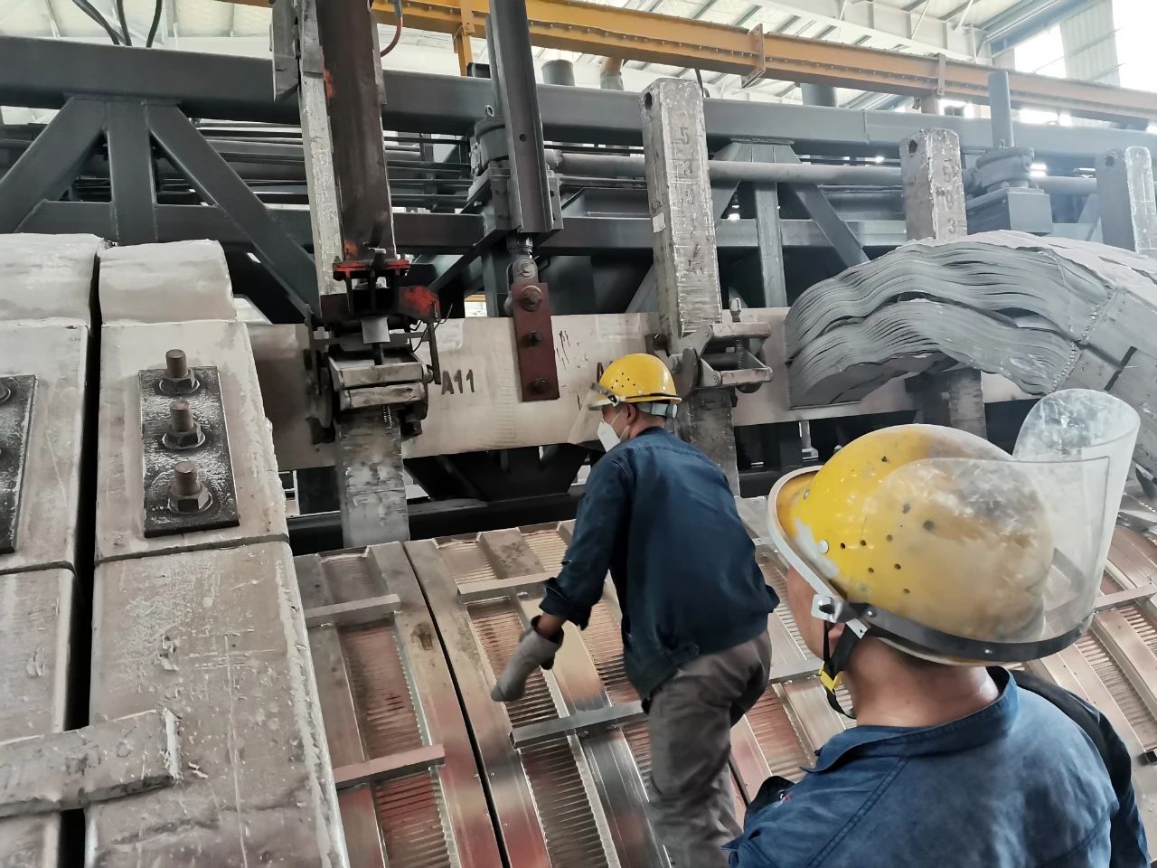 △ 換極前期準(zhǔn)備,鋪設(shè)鐵皮防掉料