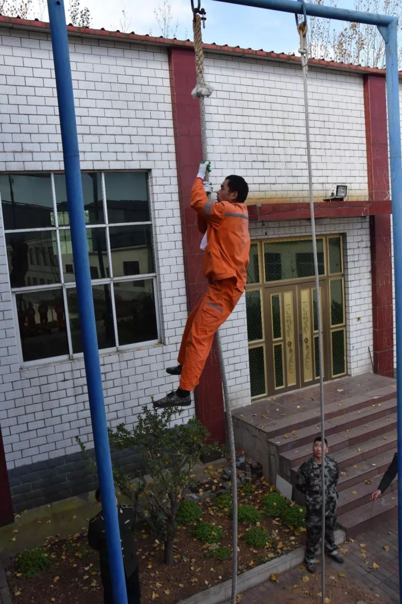 綜合體能檢驗環(huán)節(jié),參賽人員通過抽簽決定出場順序,首先進(jìn)行4米軟繩攀爬、單杠引體向上、拉檢力器80個等項目,然后佩戴好安全帽,負(fù)重15公斤的呼吸器進(jìn)行1000米耐力跑。